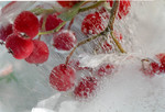 2011Het witte ijs waarin de Oostindische kers is ingesloten, kleurt blauw door de reflectie van de lucht.